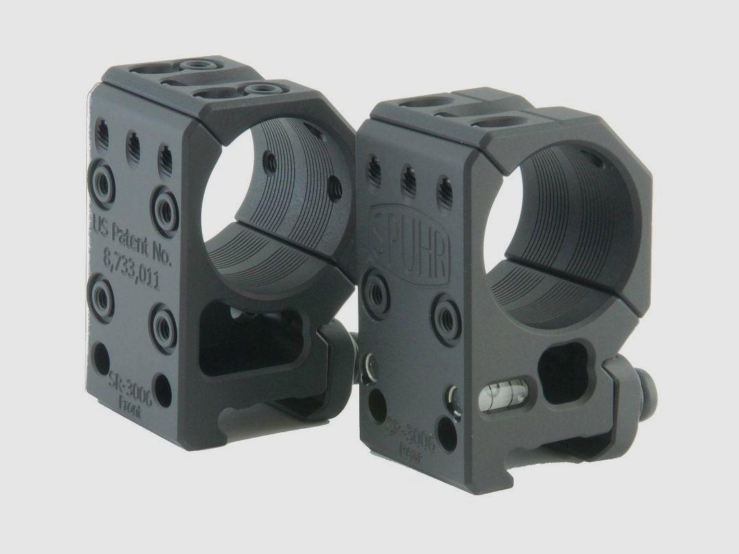 Spuhr SR-3006 Montageringe fr 30mm Mittelrohrdurchmesser und 34mm Hhe der optischen Achse. Leveling kit (A-0080/81) ist inklusive. 0 MIL / 0 MOA Hhe OA: 34mm Lnge: 32mm Gewicht: 201g Farbe: Sc...